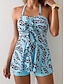 Naisille tankini 2-osainen uimapuku palmukuosisella shortsit vatsan muotoilua korkea vyötärö slim backless lomaranta-asuste kukkalehtikuosisella halterneck-pääntiellä hihaton uimapuku