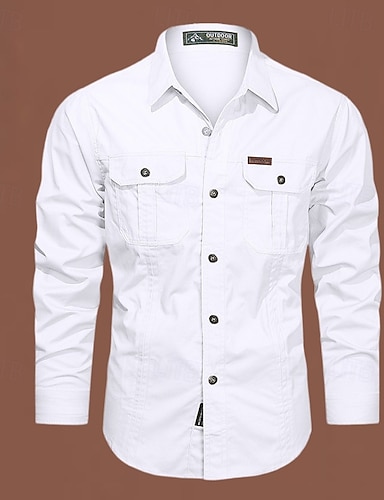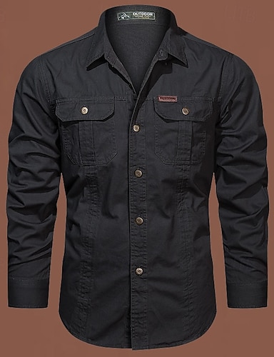 Homme chemise cargo Chemise de randonnée Chemise militaire tactique manche longue Col Rabattu Top Extérieur Respirant Printemps Automne Coton Noir Blanche Vert Véronèse Chasse Entraînement Voyage