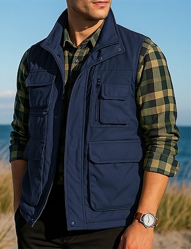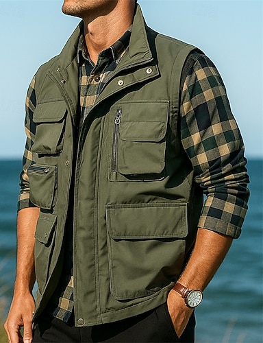 Homme Gilet de pêche Veste Randonnée Printemps Automne Extérieur Léger Respirant Veste Chasse Pêche Escalade Noir Vert Véronèse bleu marine Kaki