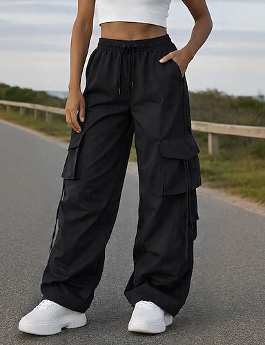 Femmes Pantalons Cargo Pantalons de randonnée Pantalons de Jogging Printemps Automne Extérieur Coupe régulière Imperméable Coupe-vent Pantalons Cordon de serrage Taille Élastique Noir Vert Véronèse