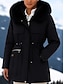 Femmes Manteau d'Hiver Imperméable Coupe-vent Avec Poches Col en fourrure Quotidien Occasionnel Régulier À capuche Coupe régulière manche longue Vêtements d'extérieur Noir Marron Kaki Automne Hiver