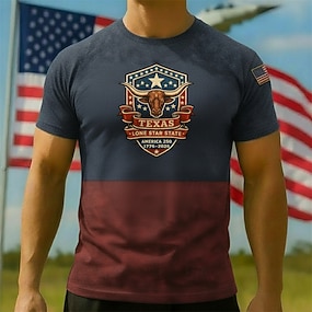 Patriotique T-shirt T-shirt graphique Longhorn du Texas État de l'Étoile Solitaire Rétro Vintage Patriotique Tee-shirt 1776-2026 pour Homme Adulte Impression 3D pour Jour de l'Indépendance / 4