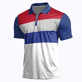 4 juillet 2026, 250e anniversaire Homme anciens combattants Patriotique Polo Manche Courte Polos Col Rabattu Occasionnel Quotidien Plage Rue Fête 3D Printemps & Été Bleu Blanche Rouge