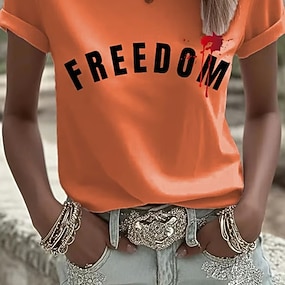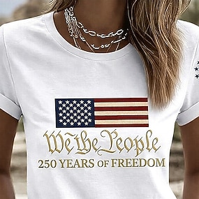 Jour de l'Indépendance Américaine Femmes T-shirt Imprimé Graphique Lettre ancien Élégant Classique Manche Courte Col ras du cou Hauts Réguliers Quotidien Bleu Noir Blanche Été Printemps