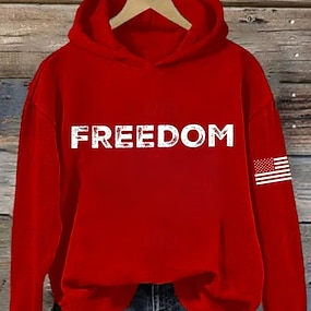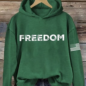 Sweat à capuche pour femme patriote américaine pour le Jour de l'Indépendance Anniversaire Sweat-Shirt Graphique Lettre Décontracté Manches Longues À Capuche Hauts Décontractés Quotidien Sports Noir