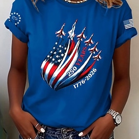 Jour de l'Indépendance Américaine Femmes T-shirt Imprimé Fleuri Graphique Drapeau Élégant Classique Occasionnel Manche Courte Col rond Hauts Réguliers Quotidien Sortir Week-end Bleu Bleu Roi Ét