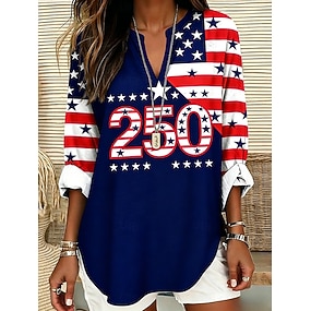 Jour de l'Indépendance Américaine Femmes Chemisier Imprimé Drapeau ancien Élégant Occasionnel manche longue Col en V Hauts Réguliers Occasionnel Quotidien Bleu Rouge Été Printemps