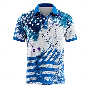 4 juillet 2026, 250e anniversaire Homme Drapeau Américain Polo Manche Courte Polos Revers Occasionnel Athleisure Boutons Printemps & Été Bleu Blanche Violet