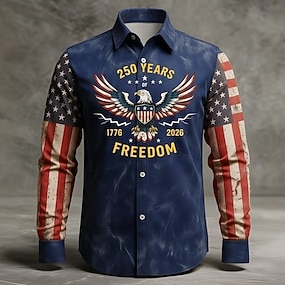 4 juillet 2026, 250e anniversaire Homme Drapeau Américain Polo manche longue Polos Revers Occasionnel Tenue quotidienne Tenue de fête Impression 3D Boutons Printemps Automne Hiver Bleu Bleu 1 Bleu 3#