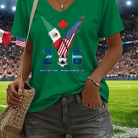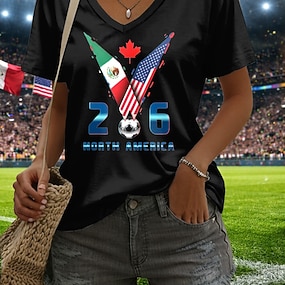 Jour de l'Indépendance Américaine Femmes T-shirt Imprimé Graphique Drapeau Américain Élégant Classique Occasionnel Manche Courte Col en V Hauts Réguliers Quotidien Sortir Bleu Noir Été Printemps