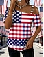 Jour de l'Indépendance Américaine Femmes T-shirt Imprimé Graphique Plaid Drapeau Américain Mode Élégant Classique Manche Courte Une Épaule Hauts Réguliers Quotidien Sortir Week-end Rouge Été Printemps