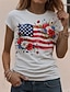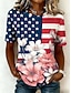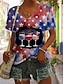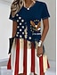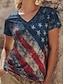 Jour de l'Indépendance Américaine Femmes T-shirt Imprimé Graphique Drapeau national Élégant Classique Occasionnel Manche Courte Col en V Hauts Réguliers Quotidien Sortir Week-end Bleu Rouge Kaki Ét