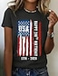 Jour de l'Indépendance Américaine Femmes T-shirt Imprimé Graphique Lettre Drapeau Américain Élégant Classique Occasionnel Manche Courte Col ras du cou Hauts Réguliers Quotidien Bleu Noir Blanche bleu