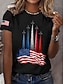 Jour de l'Indépendance Américaine Femmes T-shirt Imprimé Graphique Lettre Drapeau Américain Élégant Classique Occasionnel Manche Courte Col ras du cou Hauts Réguliers Quotidien Noir Été Printemps
