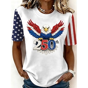 T-shirt patriotique pour femmes du 250e anniversaire du jour de l'indépendance Imprimé graphique lettre drapeau américain élégant classique casual à manches courtes col rond haut quotidien blanc été