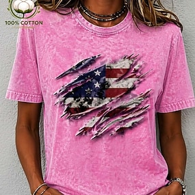Jour de l'Indépendance Américaine Femmes T-shirt Imprimé Graphique Drapeau Américain Mode Élégant Classique Manche Courte Col ras du cou Hauts Réguliers Occasionnel Quotidien Bleu Noir Blanche Bleu