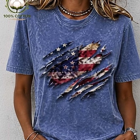 Jour de l'Indépendance Américaine Femmes T-shirt Imprimé Graphique Drapeau Lettre ancien Mode Élégant Manche Courte Col ras du cou Col rond Hauts Réguliers Occasionnel Quotidien Week-end Bleu Blanche