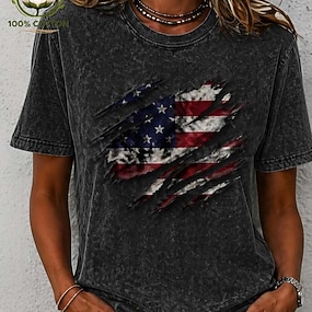 T-shirt Femme Patriote Journée de l'Indépendance Anniversaire Américain Imprimé Graphique Lettre Drapeau Américain Élégant Classique Décontracté À Manches Courtes Encolure Ronde Hauts Quotidiens Noir