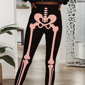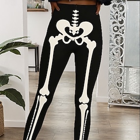 Leggings pour femmes Vacances Mode vintage Longueur complète Taille haute Graphique Impression Tête de mort Thermique Chaud Doux Respirant Extensible Formelle Extérieur Vacances Noir Blanc Printemps