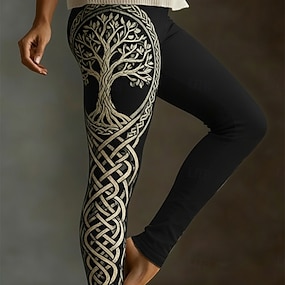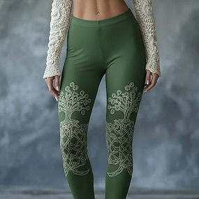 Femmes Viking Leggings Leggings confortables Vacances ancien Style Ethnique Longueur complète Taille haute Graphique Arbre Impression Confortable Élastique Occasionnel Quotidien Vacances Vert