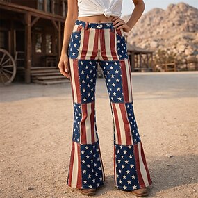 250e anniversaire des États-Unis Rétro Vintage Années 1970 Pantalon Pantalon à jambes larges Hippie Disco Taille haute Déguisement Femmes Mascarade 4 Juillet Jour de l'indépendance Adulte Pantalon