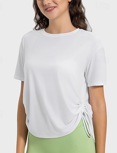 Femmes Couleur Unie T-shirt athlétique Chemise de tennis T-shirt de tennis Haut de sport Manche Courte Froncé Séchage Rapide Respirant Tennis Pickleball Course Col ras du cou T-shirt Chemise Blanche