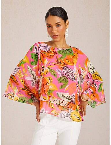 Femmes Chiffon Fleuri Floral Occasionnel Décontracté Quotidien Manche Magyar Rouge Ourlet irrégulier plus haut bas Manche 3/4 Décontracté Quotidien Col de chemise Été Printemps Printemps & Automne