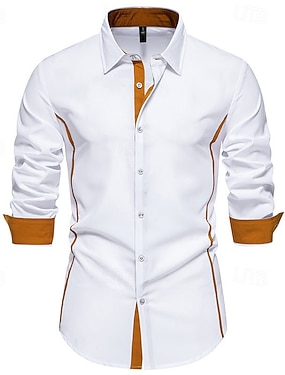 Homme Chemise Chemise habillée Chemise Boutonnée Bloc de Couleur Quotidien Affaires Bleu Ciel Noir Blanche Jaune manche longue Col mandarin Toutes saisons Vêtement Tenue