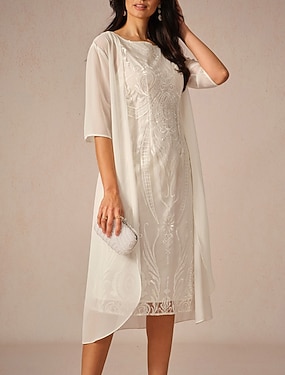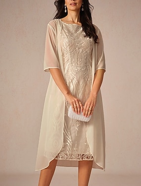 Femmes Robe Longueur Genou Robe à Plusieurs Couches Vêtement couvrant Élégant Formel robe demoiselle d honneur Cocktail Coupe régulière manche longue Col ras du cou Rose Claire Vert Été