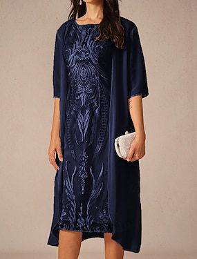 Femmes Longueur du thé Robe trapèze Robe avec veste Élégant Robes semi-formelles robe demoiselle d honneur Coupe régulière Couleur Unie Manche 3/4 Col carré bleu marine Été Printemps Automne