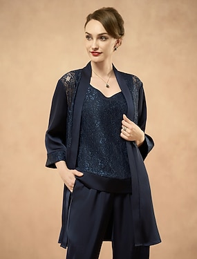 Femmes Blazer Léger Dentelle Broderie Élégant Fleuri Formel Court Col Rond Coupe Ample Manche 3/4 Vêtements d'extérieur bleu marine Été Printemps