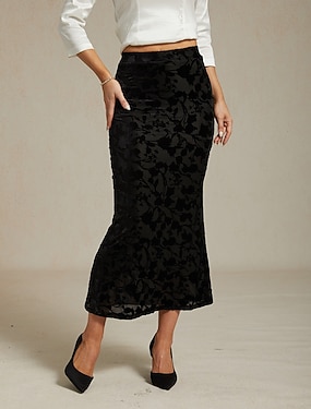 Femmes Élégant ancien Longue Brillant Maxi Taille haute Jupes Élastique Noir Été Spandex Nylon