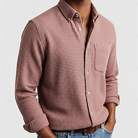 Homme Chemise Chemise gaufrée Chemise Décontractée Chemise à col officier Chemise Boutonnée Rose Claire Vin bleu marine Bleu Vert manche longue Uni Revers Henley Occasionnel Quotidien Vêtement Tenue