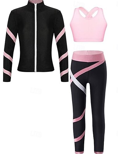 Pantalon de patinage artistique Veste De Patinage Artistique Et Pantalon Femmes Fille Patinage Veste Collants Tenues Noir Patchwork Trou de pouce Spandex Élastique Entraînement Pratique Professionnel