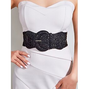 Ceinture élastique à sequins en similicuir doré scintillant pour femme, idéale pour les fêtes de fin d'année.