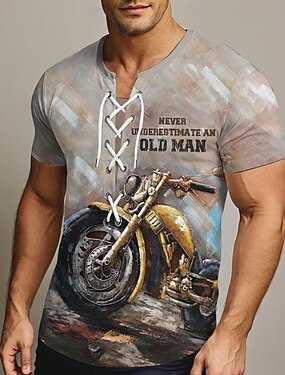 Homme Moto T-shirt Manche Courte T-shirt Impression 3D Col ras du cou Col à lacets Chemise Rétro Vintage Vintage Rétro Rue Occasionnel Quotidien Gris Été Printemps Vêtement Tenue S M L XL XXL XXXL