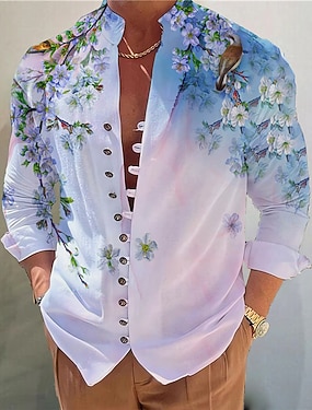 Homme Fleuri Chemise Chemise Boutonnée manche longue Mode Streetwear Designer Extérieur Occasionnel Quotidien Été Printemps Automne Col montant Imprimé Vert Claire Bleu Vert Gris