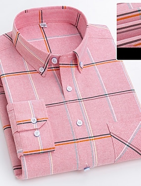 Homme Chemise Chemise boutonnée Chemise Oxford Plaid Mariage Bureau / Carrière Rose Claire Bleu Ciel Blanche Jaune manche longue Boutonné Sous Patte Printemps & Automne Vêtement Tenue Poche avant