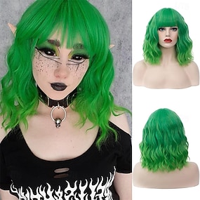 perruque cosplay avec frange tendance cheveux courts raides perruque de costume pour femme halloween carnaval fête perruque fibre synthétique résistante à la chaleur perruques de la Saint-Patrick