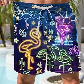 Homme Flamant rose Oiseau Fleur / Floral Maillots de bain Shorts de bain Shorts de Surf Taille Moyenne Mode Designer Surf Fête Plage Cordon de serrage Avec Poches Taille Élastique Designer Vêtement