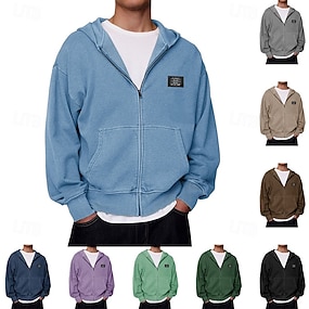 Homme Sweat à capuche Sweat à capuche zippé intégral Noir bleu marine Vert foncé Violet Marron À capuche Uni Texturé Sport & Loisir Occasionnel Quotidien ancien Streetwear Vêtements de sport Toutes