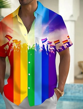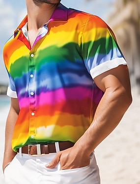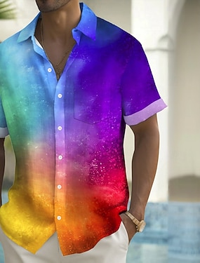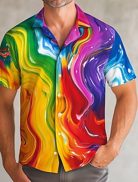 Homme Arc-en-ciel Encre Splash Fierté Chemise Chemise d'été Chemise Boutonnée Manche Courte Mode Décontractée Fête Été Printemps Col Rabattu Impression 3D chemises à col Une poche avant Noir