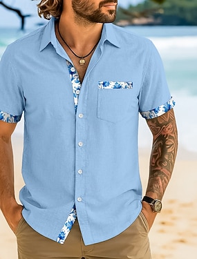 Homme Chemise Chemise en lin Chemise Guayabera Chemise popover Chemise d'été Tenue de plage Uni Occasionnel Quotidien Blanche Bleu Roi Kaki Bleu clair Manche Courte Col Été Vêtement Tenue
