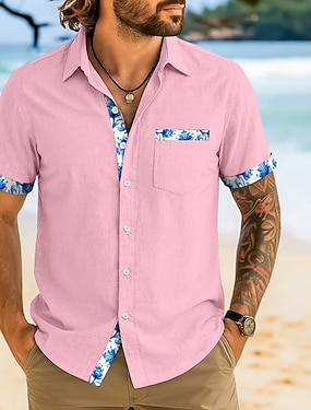 Homme Chemise Chemise en lin Chemise d'été Tenue de plage Chemise Boutonnée Chemise en crépon Couleur Unie Vacances Rue Blanche Rose Claire Kaki Manches courtes Col de chemise Été Printemps Vêtement
