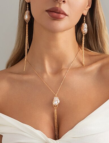 un parure de bijoux de mariée 2 Zircon Diamant Imitation 1 Collier Boucles d'oreilles Femmes Élégant Luxe Doux Adorable Frange à pompons Amour Précieux irrégulier Parure de Bijoux Pour Mariage robe
