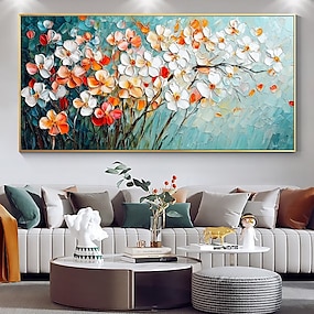 Peinture à l'huile faite à la main sur toile, décoration murale moderne abstraite, fleurs à l'huile épaisses pour salon, décoration d'intérieur, cadre tendu, peinture suspendue/peinture roulée sans