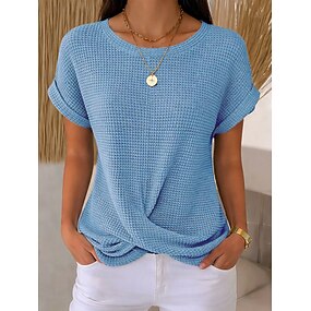 Femmes Chemisier Couleur Unie Élégant Occasionnel Demi Manches Col ras du cou Hauts Réguliers Quotidien Bleu Blanche Jaune Rouge bleu marine Été Printemps
