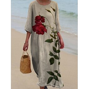 Femmes Robe Midi Robe Décontractée Robe Imprimée Mode Moderne Quotidien Plage Week-end Coupe régulière Fleuri Manche 3/4 Col ras du cou Bleu Blanche Rose Claire Kaki Printemps Automne