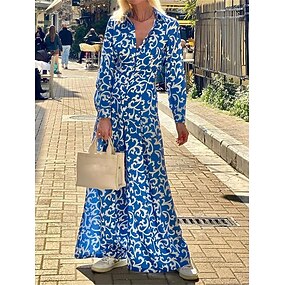 Femmes Robe maxi Robe trapèze Robe ajustée et évasée Vacances Occasionnel Boho Soirée Quotidien Sortir Coupe régulière A Ombre Fleuri Graphique manche longue Col ras du cou Rouge Bleu Violet Ét