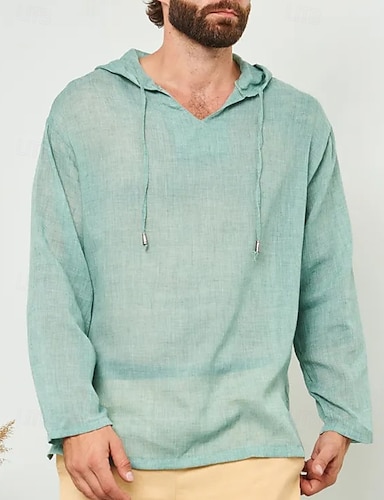 Homme Chemise Chemise en lin Chemise popover Chemise d'été Tenue de plage Chemise à capuche Couleur Unie Vacances Rue Blanche Vert Claire Bleu Vert manche longue À capuche Été Printemps Vêtement Tenue
